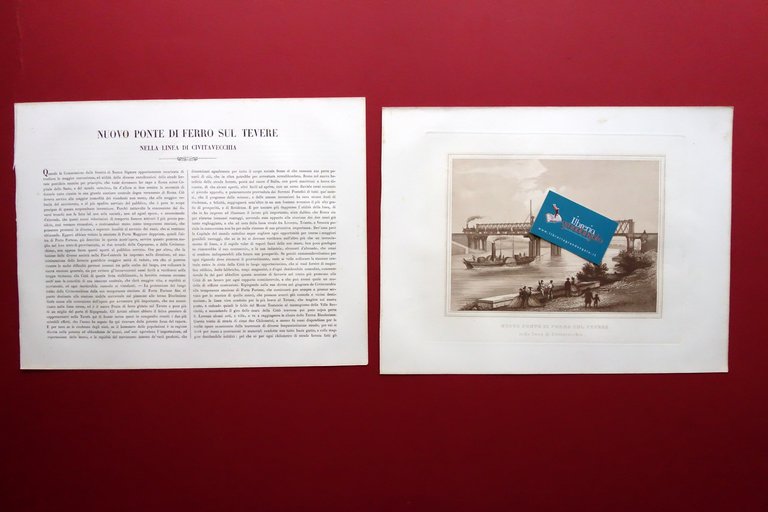 Acquatinta Ponte di Ferro sul Tevere Ferrovia Civitavecchia Pio IX Met‡ '800