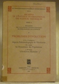 Actualités scientifiques et industrielles. Archives de l’Institut International des Sciences Théoriques. Série A Bulletin de l’Académie Internationale de Philosophie des Sciences 8: Problèmes d’évolution. J.H.F. Umbgrove- Aspects Paléontologiques de l’Evolution. M.J. Sirks- Les Dynamisme des Populations. Piveteau, J. L’Evolution Humaine.