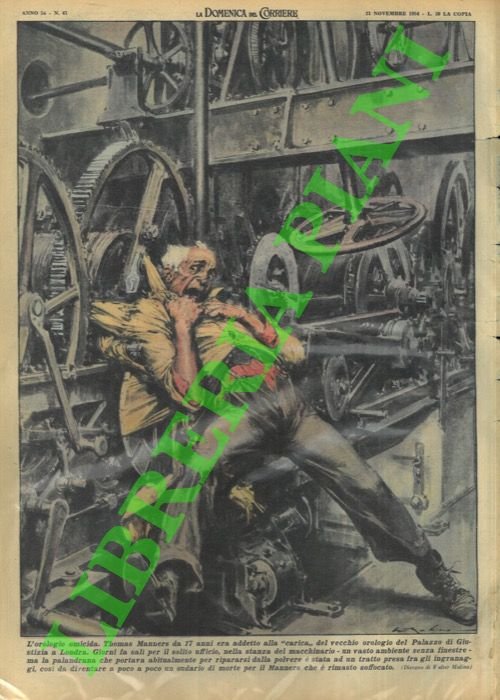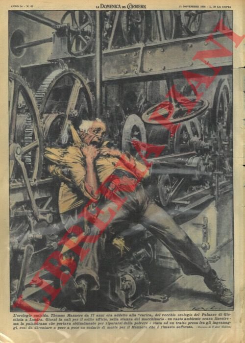 Addetto alla carica dell'orologio del Palazzo di Giustizia, rimane soffocato mentre lavora tra gli ingranaggi.