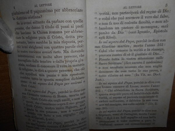 di Gian Giacomo Maurette Curato di Serre (Ariége). Torino, Tip. Claudiana, 1861. Addio al Papa. In-16° piccolo, br. 93 pp. Ben conservato. Neg. scat. rossa opuscoli nonn.
