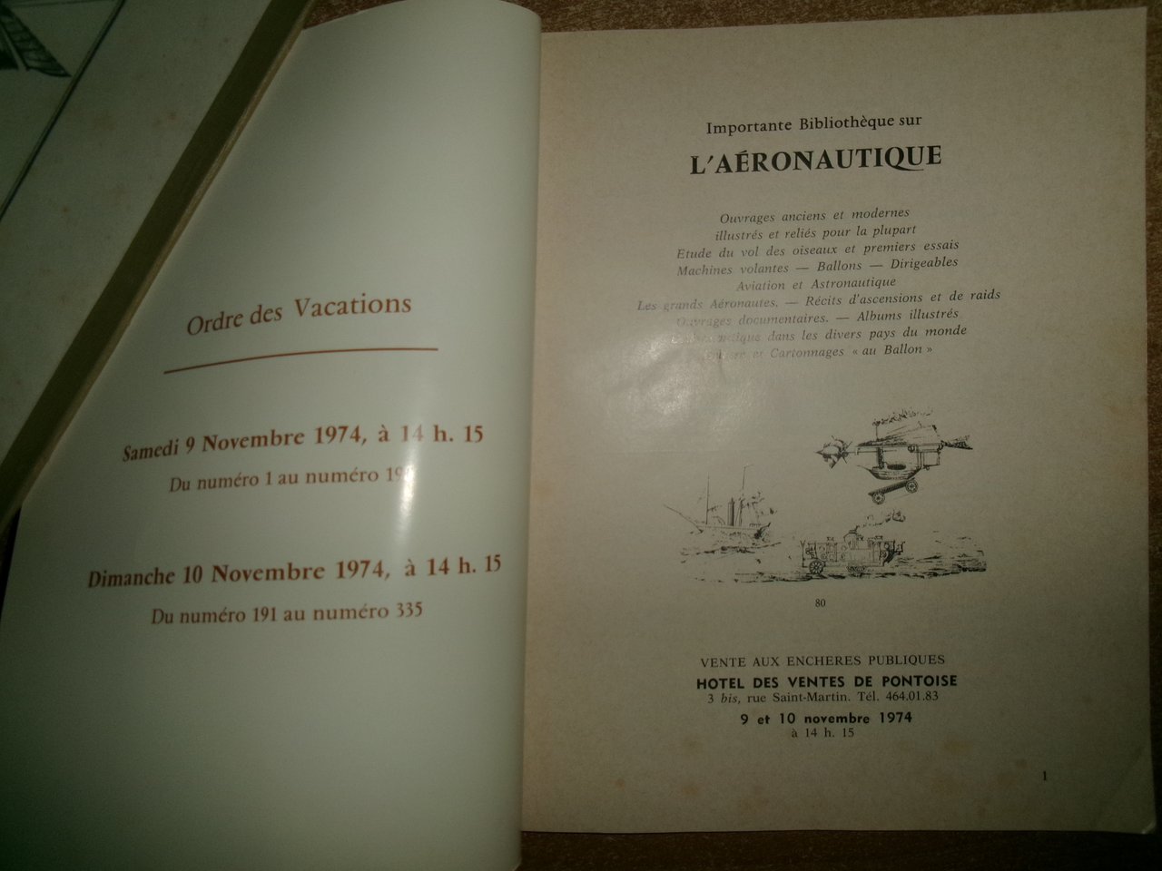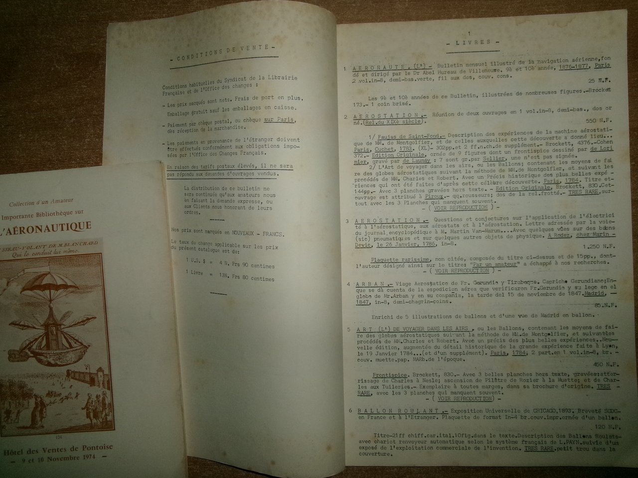 Aérostation. François Chamonal. Importante Bibliothèque sur L' Aéronautique. Collection d' un Amateur. Paris, Le Peletier, 1960. Kotel des Ventes de Pontoise, 1974. 2 cataloghi, in-4°/in-8°. br. con numerose riproduzioni n.t. e f.t. Ottimo stato con testo in francese. Neg. lett. mod. mob. E entro busta trasp.