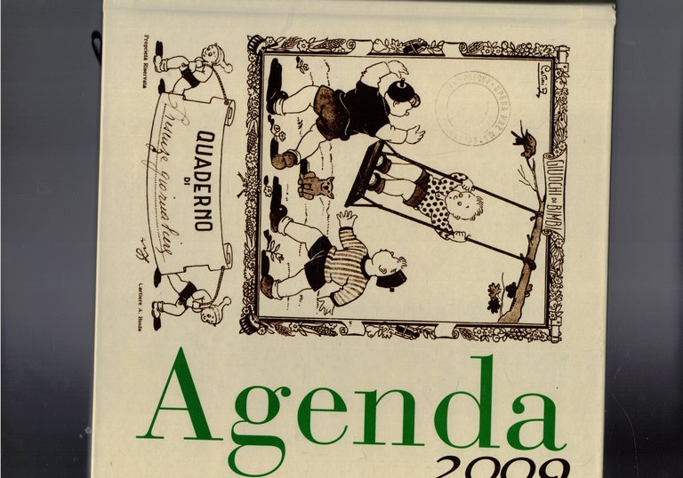 Agenda dei beni culturali e archivistici, dedicata ai fanciulli e scolari con foto, di bambini, libri, quaderni, ecc. | Libri antichi e moderni |