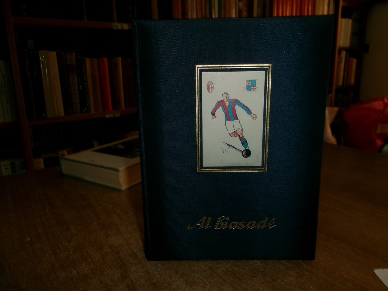 Al Biasadé 1990. di Carlo Cardelli (Autore). Bologna, Studio Costa, 1990. In-8°, legatura tutta tela editoriale con fregi e titoli dorati al piatto anteriore ed un'illustrazione di un calciatore del Bologna applicata, cordoncino in seta pp. (300 c.a) con illustrazioni e tavole in nero e a colori (edizione di 2000 copie n° 1424). Ottimo stato. Raro. Neg. Bol. mob. S