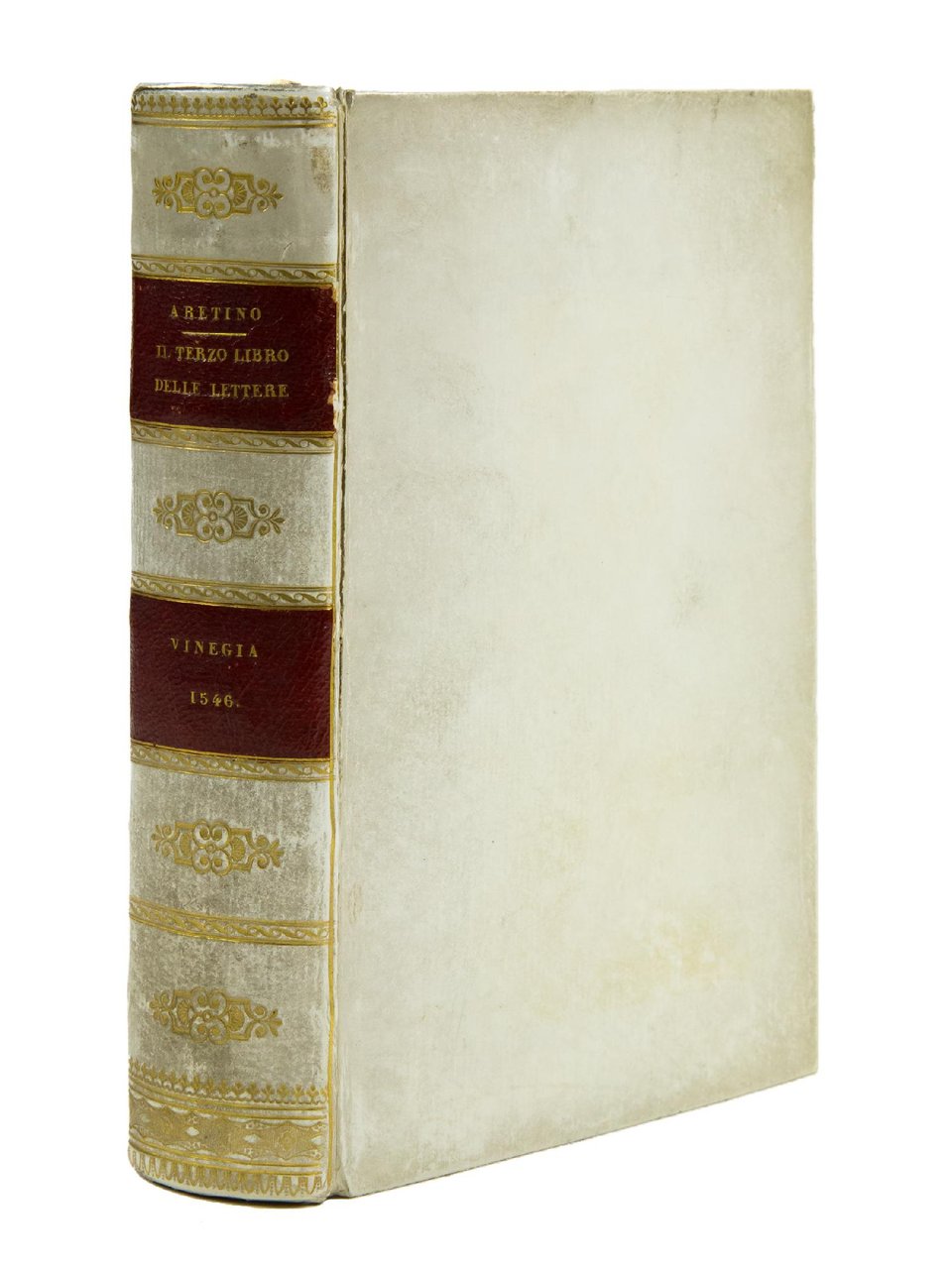 FIRST EDITION, second issue (with some textual corrections and 2 short letters completely reset), of the third book of Aretino's letters which was edited by Ludovico Domenichi and dedicated by the author to the Grand Duke of Tuscany (Venice, January 1546).