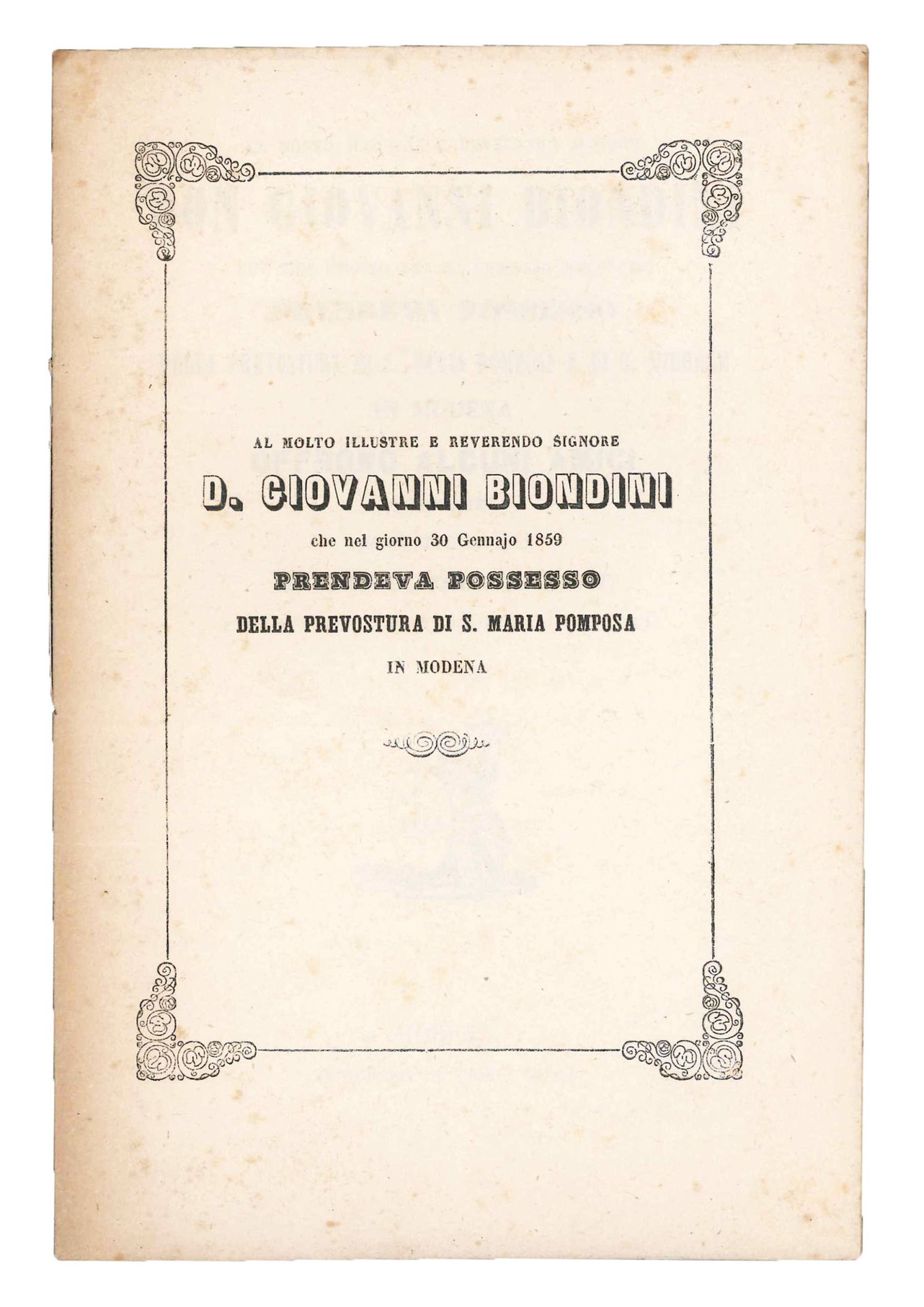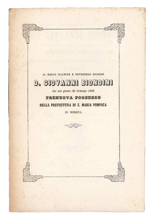 Al molto illustre e reverendo signore Don Giovanni Biondini [...].