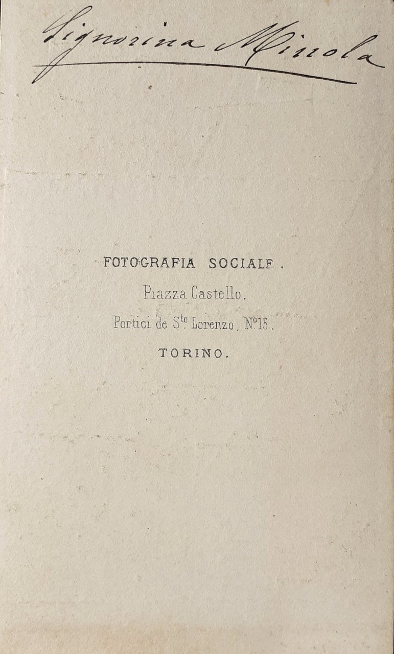 Albumina cvd " Ritratto Sig.na Minola fotografia Sociale Torino 1860