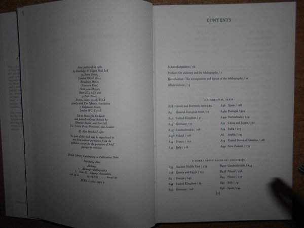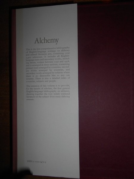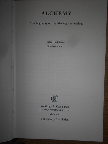 ALAN PRITCHARD. London, Boston and Henley, Routledge & Kegan Paul, 1980. ALCHEMY. A Bibliography of English-Language Writings. In-8°, tela rossa edit. con titolo in oro al dorso e sovracopertina. vii, 439 pp. Come nuovo. Uff. D - III - 5 - 2