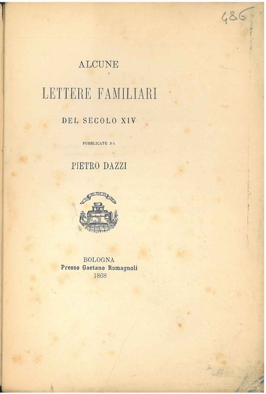 Alcune lettere familiari del secolo XIV pubblicate da Pietro Dazzi. Scelta di curiosità letterarie inedite o rare dal secolo XIII al XVII in appendice alla collezione di opere inedite o rare