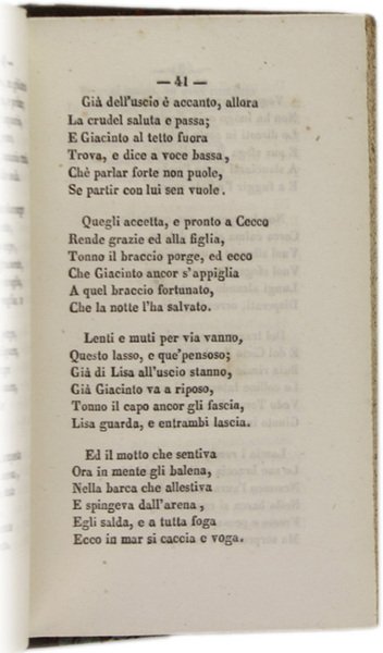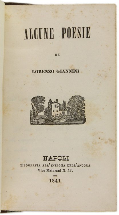 (Codice AN/2417) In 16° 4-152 pp. Prima e unica edizione. Dedicatoria a Gabriele Quattromani. Piccola veduta incisa al frontespizio. Bella legatura mezza pelle coeva, filetti e titolo oro, piatti marmorizzati, tagli colorati. Ottimo e fresco volume. ~~~ SPEDIZIONE IN ITALIA SEMPRE TRACCIATA