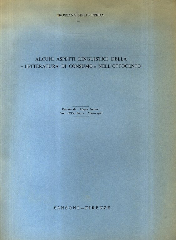 Alcuni aspetti linguistici della "letteratura di consumo" nell'Ottocento. Estratto da "Lingua nostra", vol. XXIX, fasc. 1, Marzo 1968.