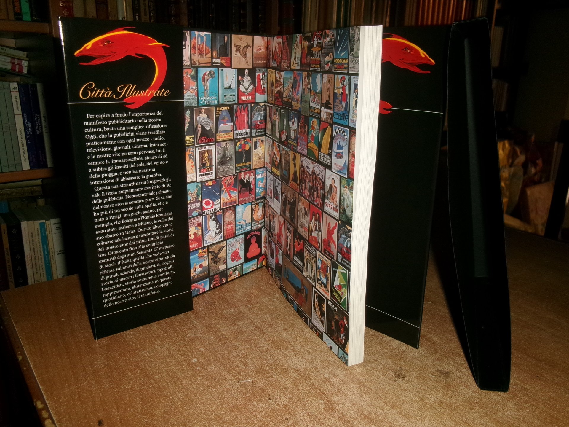 Alessandro Molinari Pradelli. Città Illustrate Storia del Manifesto Pubblicitario in Emilia Romagna. Bologna, L' Inchiostroblu per Carisbo, 2002. In-4°, tela nera edit. con titoli in oro e sovracopertina ill. a col. 221 pp. con numerose illustrazioni a colori anche a piena pagina. Come nuovo con astuccio nero muto. Neg. mob. L