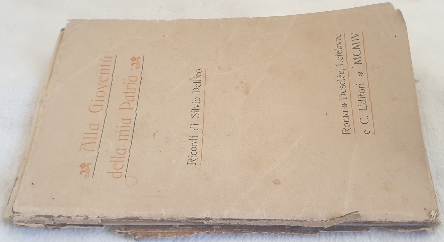 Raro opuscolo del 1904 di autore anonimo dedicato a Silvio Pellico. Nella prima parte alcuni pensieri religiosi, alla fine una parte dedicata ad Alessandro Volta e Silvio Pellico. In discrete condizioni. Copertina editoriale in discrete condizioni con usure e mancanze marginali. Legatura quasi assente. Pagine in ottime condizioni con rare fioriture. In 16. Dim. 15x9,5 cm. Pp. 78+(2).<BR>Scrace pamphlet of 1904 of anonymous author dedicated to Silvio Pellico. In the first part some religious thoughts, at the end a part dedicated to Alessandro Volta and Silvio Pellico. In fair conditions. Editorial cover in fair conditions lightly worn in the extremities. Binding alm st lacks. Pages are in very good conditions with occasional foxing. In 16. Dim. 15x9,5 cm. Pp. 78+(2).<BR>