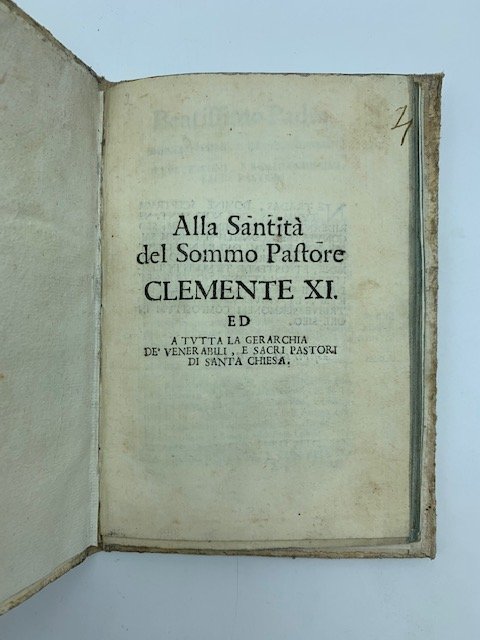 Alla Santita' del Sommo Pastore Clemente XI ed a tutta la gerarchia de' venerabili e sacri pastori di Santa chiesa (Segue): Preghiere pubbliche che. si fanno in Costantinopoli.(Segue): Scrittura di NN. patrizio veneto alla Santita' di Clemente X stampata in Venezia appresso gli eredi Ginammi 1666 | Libri antichi e moderni | Anonimo
