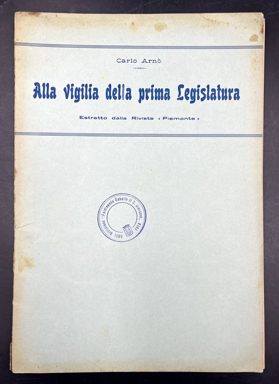 Alla vigilia della Prima Legislatura. Estratto originale dalla rvista "Piemonte". [1833-1848; su CARLO ALBERTO, DE GUBERNATIS, Riccardo SINEO, genesi dello STATUTO ALBERTINO, e 1849].