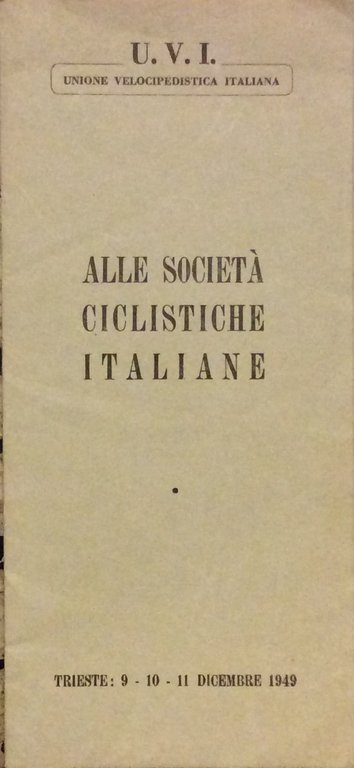 ALLE SOCIETA' CICLISTICHE ITALIANE. - Trieste: 9-10 Dicembre 1949. | Libri antichi e moderni | UNIONE VELOCIPEDISTICA ITALIANA