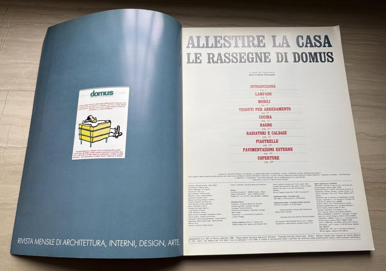I ed.: Finito di stampare il 31 .8. 1988. Supplemento al n. 697 di Domus settembre 1988 (Domus: Via Achille Grandi 5/7 - Rozzano, Milano). IV/223+(17)=240/brossura patinata (Copertina: Gerhardt Wilheim von Reuten. La stanza dell'artista, Acquerello. Londra, collezione privata. Elaborazione grafica). Illustrazioni a colori e in b/n. Art Director: Italo Lupi. Stato buono (lieve usura della copertina ai margini - volume nel complesso leggermente brunito).