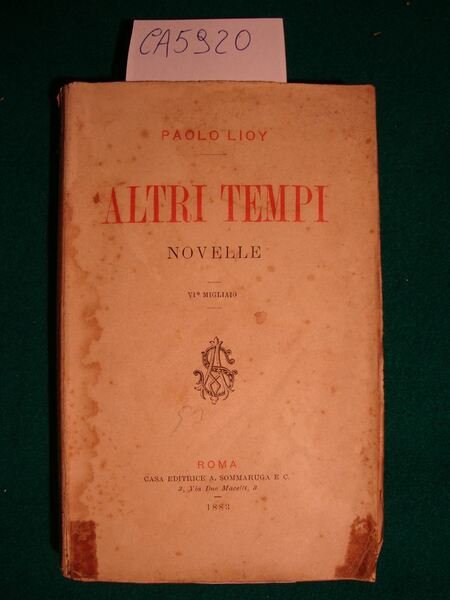 (Collana : Collezione Sommaruga - n. 9) Vol. del la - Collezione Sommaruga - - DETTAGLIO DELLE CONDIZIONI : Fioriture marcate in coperta con aloni e macchie; danni alla legatura con prime pagg. staccate. Fioriture marcate sparse anche alle pagg. che tuttavia non ledono la leggibilità del testo - (51e).