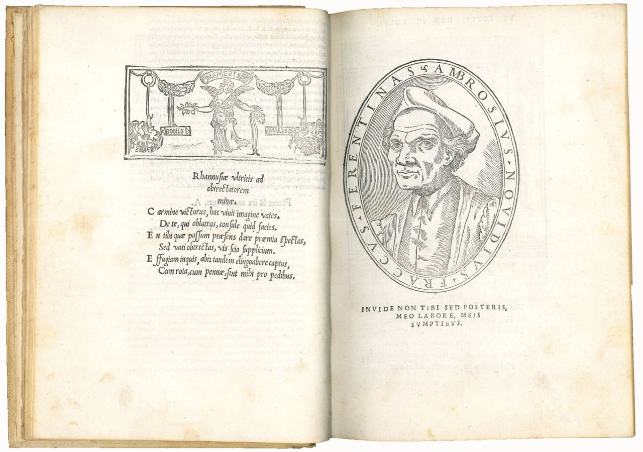 Ambrogio Fracco was born around 1480 to a modest family in Ferentino. He was educated in his hometown, embraced the ecclesiastical life and cultivated poetry before traveling to Rome in search of fortune. The appellation “Novidius” (i.e. “novus Ovidius”), which he added to his name, points to Ovid as the Latin poet whose inspiration Fracco felt most strongly and whom he sought to emulate in his works. In Rome, he may have worked as a schoolmaster to earn a living: his compositions are full of allusions to a graceless and miserable existence. The poem in 285 couplets Consolatio ad Romam, printed in 1538 with a dedication to Cardinal Ennio Filonardi, does not prove that Fracco was in the service of the prelate. The date post quem for his death is the edition of the Sacrorum fastorum libri XII (Rome, 1547), the work with which Fracco wanted to bequeath his name to posterity. The work was begun under Pope Leo X and completed under Paul III, to whom it was dedicated. Following the example of Ovid's work, to which it claims to be the Christian equivalent, Fracco's Fasti is intended to describe the sacred rites and recurrences of the calendar. However, the attitude towards pagan deities and rites is not one of condemnation: on the contrary, Fracco, without adopting a precise philosophical interpretation of mythology, welcomes traditions and beliefs foreign to the Christian religion, based on a syncretistic spirit, mostly arbitrary and fanciful, but based on very ancient popular traditions, tolerated and indulged by the Church (cf. F. Pignatti, Fracco, Ambrogio, in: “Dizionario Biografico degli Italiani”, vol. 49, Rome, 1997, s.v.).