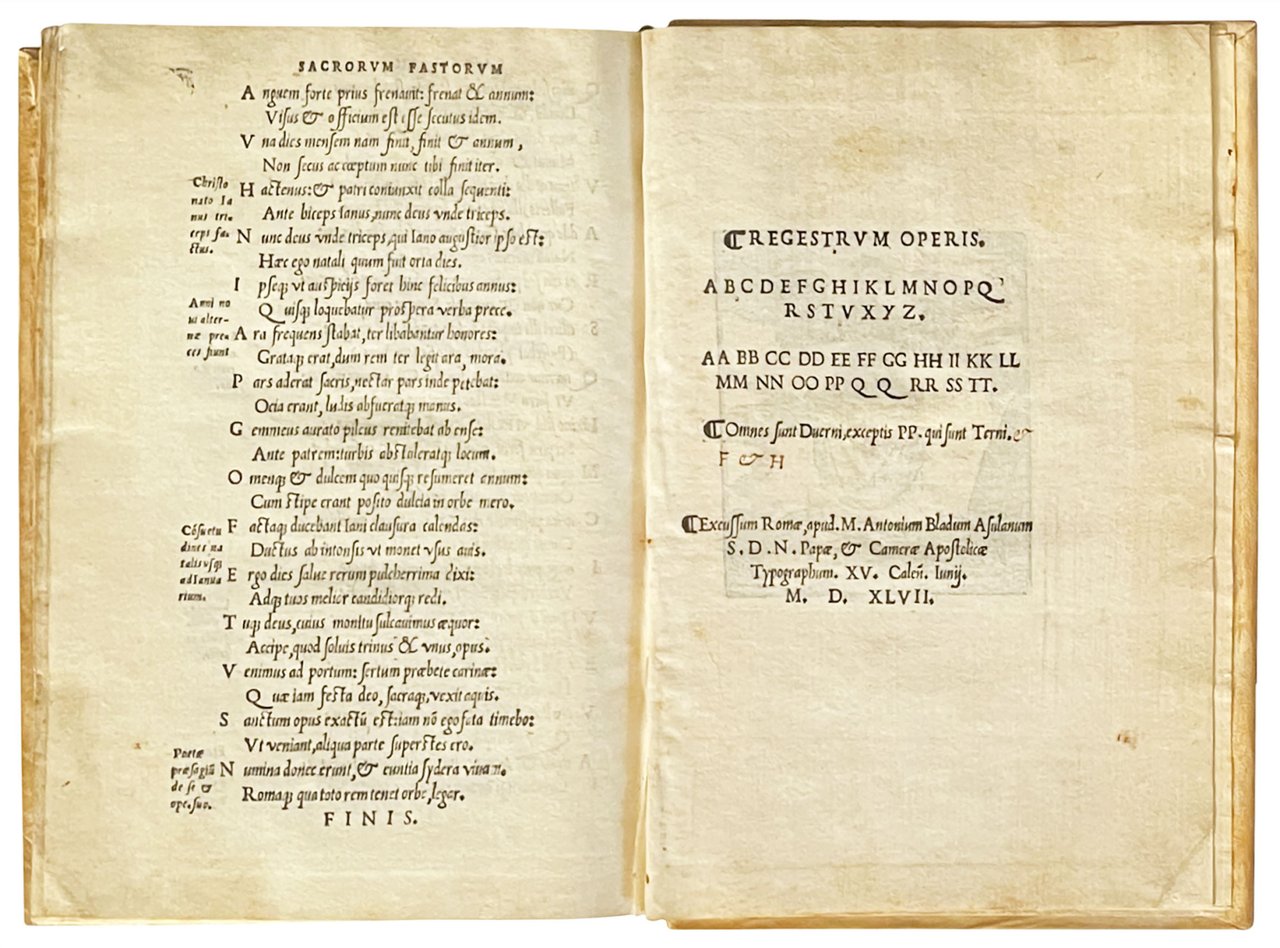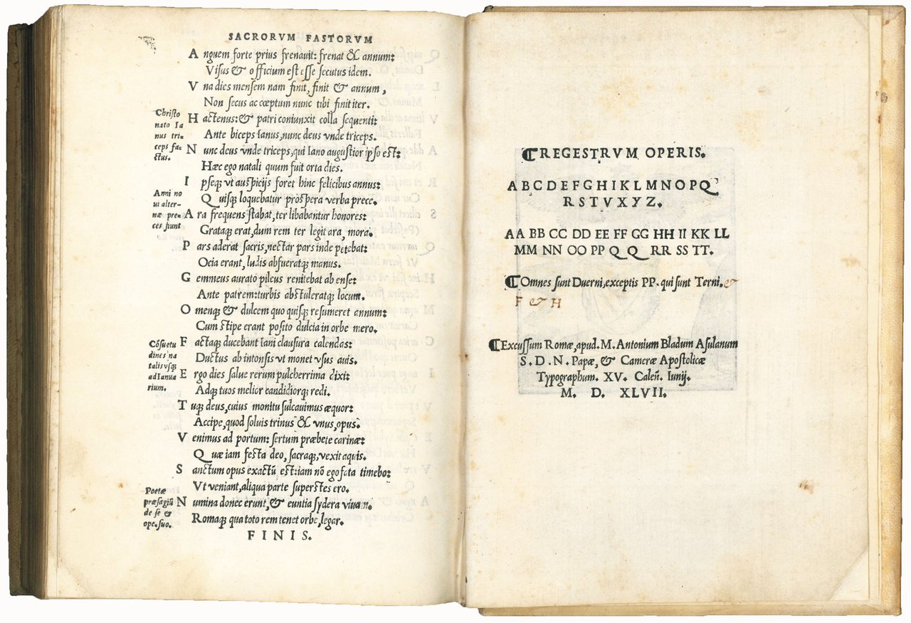 First edition, dedicated to Pope Paul III, of this verse text written in imitation of Ovid's Fasti.