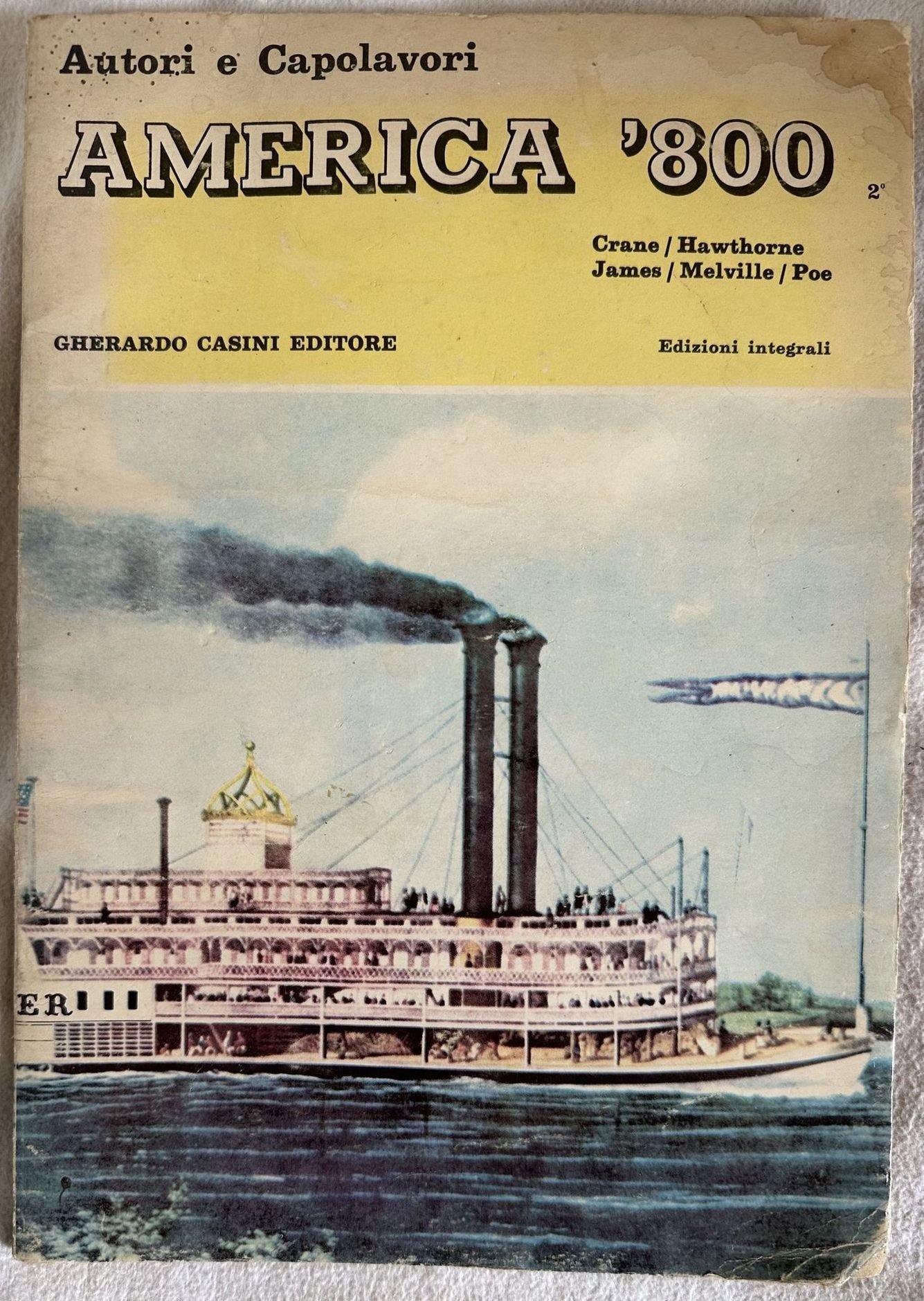 Edizione del 1966 di questo antologia di autori americani dell'ottocento. Siamo in possesso del secondo volume con i seguenti autori: Nathaniel Hawthorne (La ferrovia celeste, Il Gran carbonchio); Edgar Allan Poe (Il gatto nero; La rovina di Casa Usher); Herman Melville (L'isola di Norfolk e la vedova "Chola") Henry James (L'umiliazione dei Northmore); Stephen Crane (La barca) ecc. Alcune illustrazioni e foto nel testo. In buone condizioni. In 16. 27x19 cm. Pp. 97-189+(1)Edition of 1966 of this anthology of american authors of 19th century. We only have the second volume with the following authors: Nathaniel Hawthorne (La ferrovia celeste, Il Gran carbonchio); Edgar Allan Poe (Il gatto nero; La rovina di Casa Usher); Herman Melville (L'isola di Norfolk e la vedova "Chola") Henry James (L'umiliazione dei Northmore); Stephen Crane (La barca) ecc. Some illustrations and photoes in the text. In good conditions. In 16. 27x19 cm. Pp. 97-189+(1)