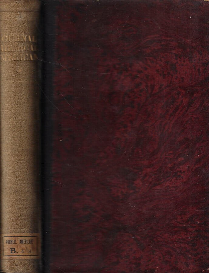 Due annate incomplete, dal n. 1 al n. 6, rispettivamente del marzo, maggio, giugno, ottobre, dicembre 1881 e del febbraio 1882 della rivista American Chemical Journal. Mezza legatura in tela scura e piatti marmorizzati rossi, scolorita al dorso, con leggere abrasioni e bordi stanchi. Pagine ingiallite, ben salde, con ampio margine e note al piede, arricchite da alcune tavole ripiegate. Numero pagine 464.