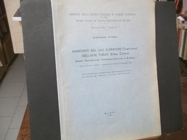 AMMONITI DEL LIAS SUPERIORE TOARCIANO DELL'ALPE TURATI ERBA COMO - MEMORIE DELLA SOCIETà ITALIANA DIN SCIENZE NATURALI E DEL MUSEO DI STORIA NATURALEDI MILANO --VOLUME XIII - FASC. II