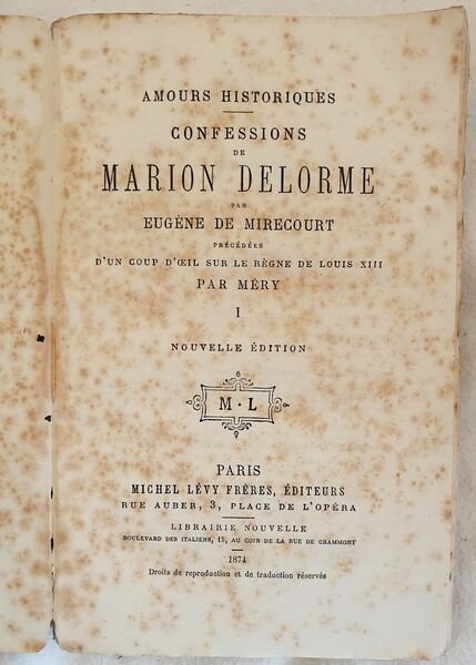 AMOURS HISTORIQUES CONFESSIONS DE MARION DELORME