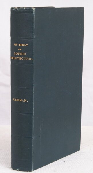 8vo., Third Edition, with an engraved frontispiece and 14 engraved plates, and EXTRA-ILLUSTRATED by the addition of 10 small engraved illustrations of churches and a long relevant cutting mounted on rear endpapers, three separate signatures on blank preliminary, some very light age-staining (mainly marginal) to a few plates; nineteenth century green cloth, gilt back, red sprinkled edges, patterned endpapers, an unusually well-preserved, firm, clean copy. THE FIRST SYSTEMATIC TREATISE ON GOTHIC ARCHITECTURE IN ENGLAND, and by far the most influential - Rickman's nomenclature was adopted by most subsequent writers and continues in use to this day. The work was first published in Liverpool in 1817 instancing 833 examples, with a second, slightly larger version appearing two years later. The present edition lists well over 3000 buildings (mainly churches), the majority inspected personally by Rickman, AND EXTENDS THE SCOPE OF THE WORK TO INCLUDE IRELAND, SCOTLAND AND WALES. This is the penultimate edition published during the author's lifetime and includes new lithographed plates by the author. A most attractive copy. See Eastlake pp.122-126.