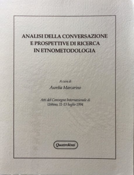Titolo: Analisi della conversazione e prospettive di ricerca in etnometodologia: atti del Convegno internazionale di Urbino, 11-13 luglio 1994