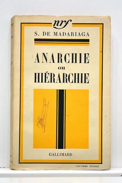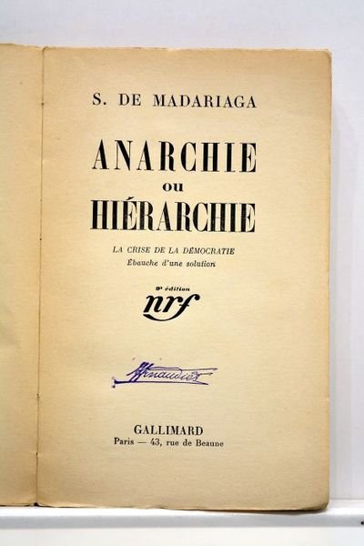 Anarchie ou hiérarchie. La crise de la démocratie. Ébauche d'une solution. 9e édition.