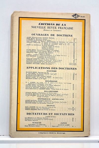 221 pages. (19x12cm). Broché. Non rogné. Couverture imprimée en couleurs. Légers défauts d'usage. Salissures. Bon état général.