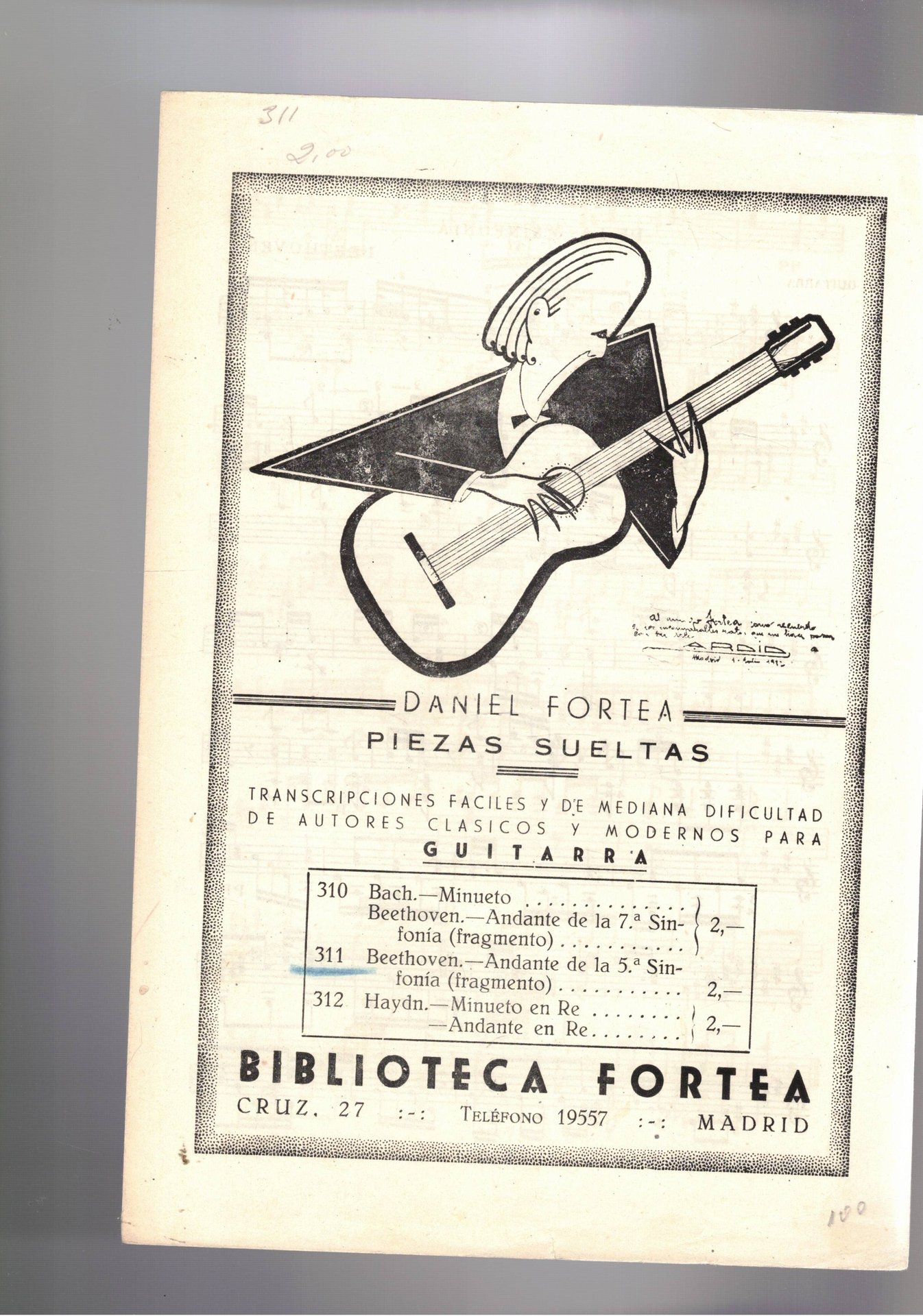 Andante de la 5a sinfonia. Transcripciones faciles y de media dificultad. | Libri antichi e moderni | Beethoven.