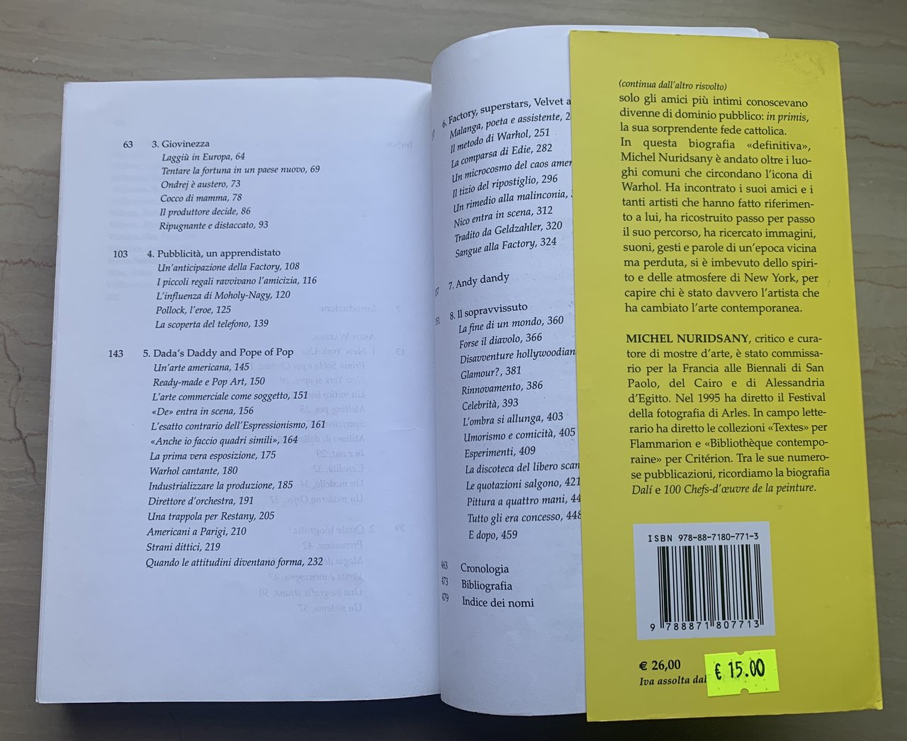 I ed. italiana: ottobre 2008 (ed. originale: Andy Warhol, Flammarion 2001). Traduzione dal francese di Sabrina Favaro. Collana Le comete. VIII/496/brossura satinata con risvolti (Copertina di Dada Effe - Torino. Foto in copertina: Andy Warhol fotografato da Ugo Mulas, 1964 © Interfoto / Archivi Alinari). Illustrazioni in b/n f.t.. Stato buono (leggera usura e leggera brunitura della copertina).