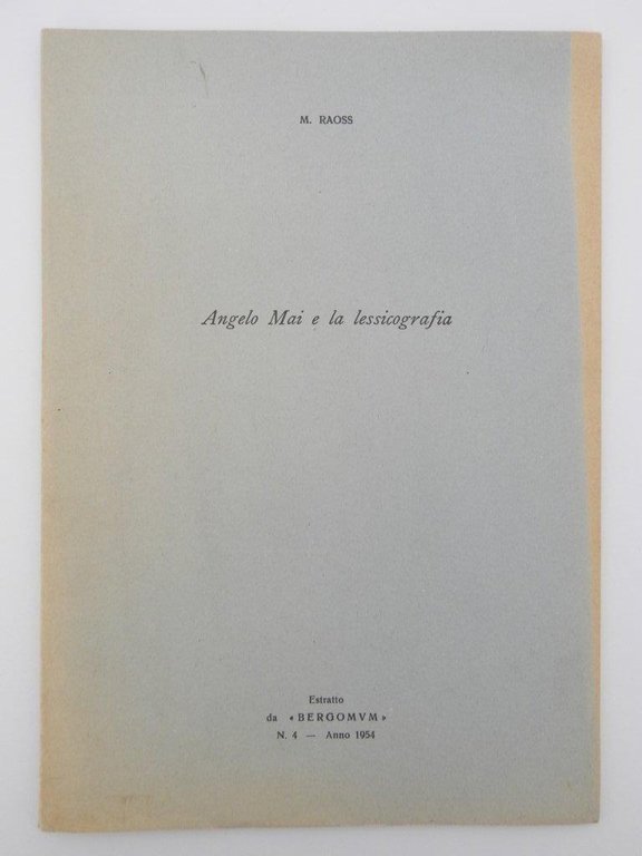 23 cm, pp. (42), brossura editoriale, titolo al piatto. Estratto dalla rivista Bergomum, n. 4, 1954. Esemplare molto buono. *** TUTTI I NOSTRI LIBRI SONO VISIBILI PREVIO CONTATTO MAIL O TELEFONO NELLA NUOVA SEDE DI MILANO: LIBRERIA COSMOPOLIS, VIA JOMMELLI, 22. ***