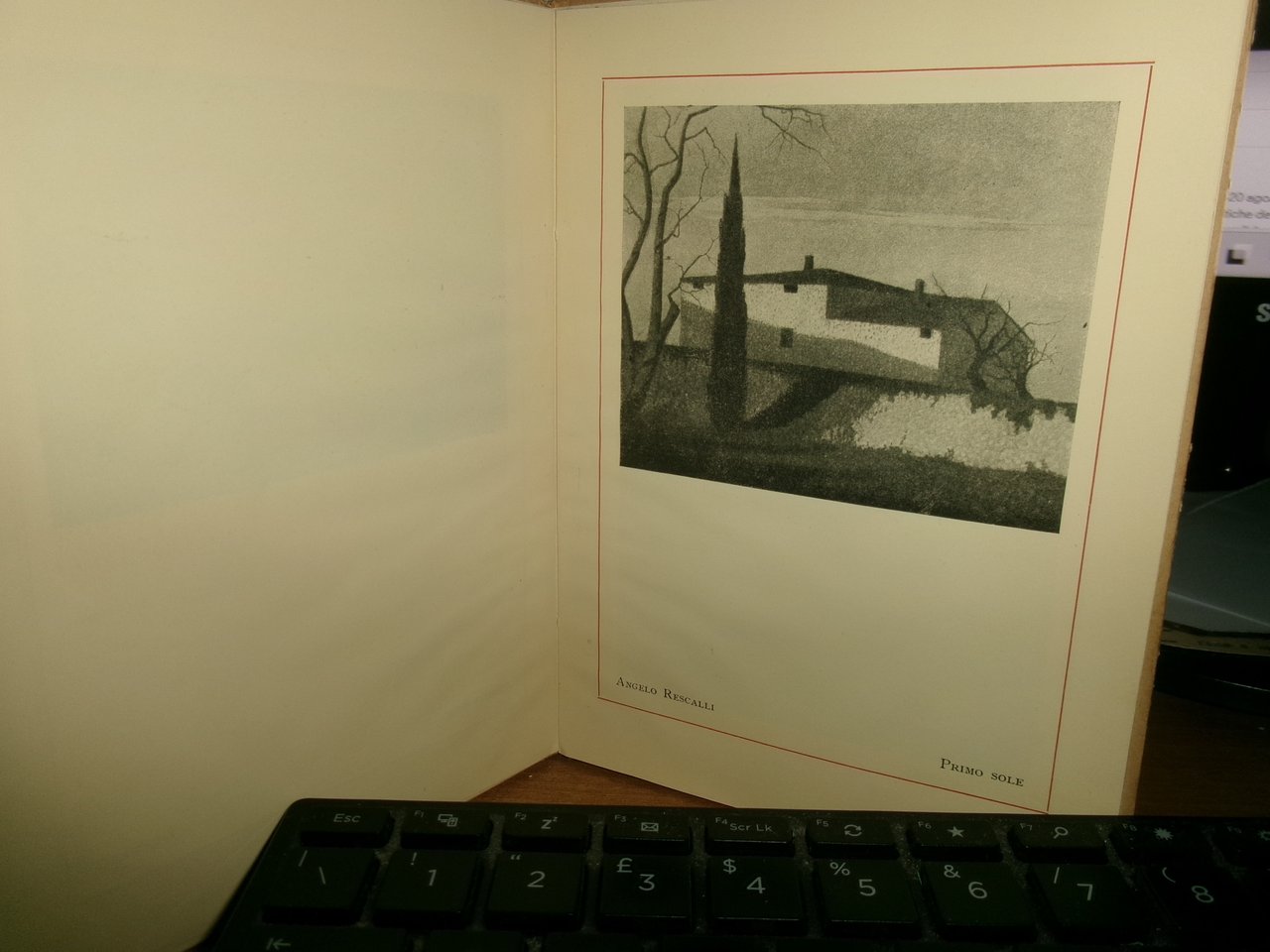 ANGELO RESCALLI di ETTORE COZZANI. I RESCALLI. Milano, L' Eroica, 1924. In-16°, cartoncino edit. illustrato in rosso. 13 pp. con alcune opere di Angelo Rescalli fuori testo. In ottimo stato. Neg. mob. 1 in busta trasp.