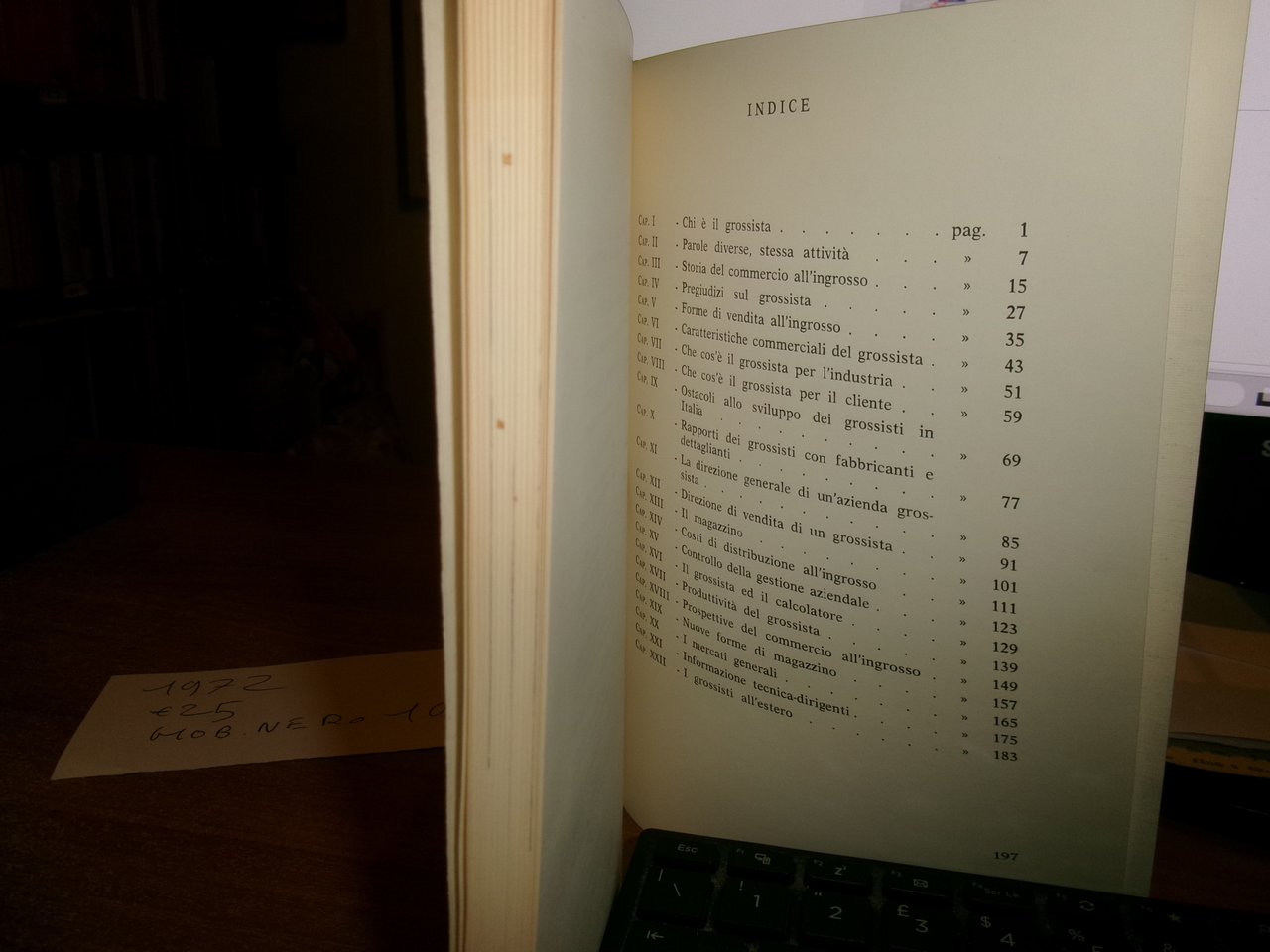 ANGELO RODOLFO STIASSI. IL GROSSISTA etica, storia e funzioni nel moderno commercio. Bologna, Edizioni Calderini, 1972. In-8°, br. edit. ill. a col. viii, 197 pp. con alcune illustrazioni in nero n.t. Ottimo stato. Neg. mob. nero 10
