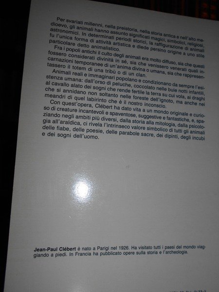 Jean-Paul Clébert. Milano, Armenia Editore, 1990. ANIMALI fantastici. Reali e immaginari che popolano le fiabe, la pittura, la mitologia e i proverbi popolari. In-8°, cartoncino edit. 390, (5) pp. con numerose illustrazioni in bianco e nero nel testo. Come nuovo. Raro e ricercato. Neg. mob. nero 10 entro busta.