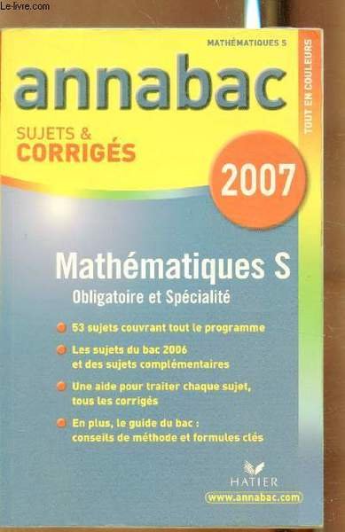 Annabac - Sujest & Corrigés - 2007 - Mathématiques S - | Libri antichi e moderni | Collectif