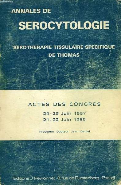 ANNALES DE SEROCYTOLOGIE, SEROTHERAPIE TISSULAIRE SPECIFIQUE DE THOMAS, ACTES DU CONGRES | Libri antichi e moderni | Collectif
