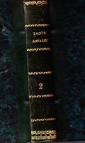 Edizione latina con testo a fronte in francese. Volume in 16°, pagine 572. Legatura in mezza pelle verde con titolo in oro al dorso. Leggere abrasioni al piatto posteriore. Targhetta di possesso allo sguardo del piatto anteriore. Copia buona. Volume secondo della serie sulle opere di Tacito edito sotto la direzione di J. H. Dotteville.