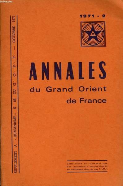 ANNALES DU GRND ORIENT DE FRANCE suppl�ment au bulletin n�88 du G. O.D.F