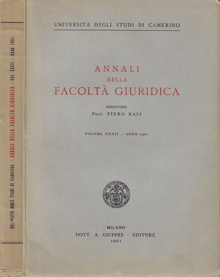 Annali della Facoltà Giuridica. Vol. XXVII-Anno 1961 | Libri antichi e moderni |