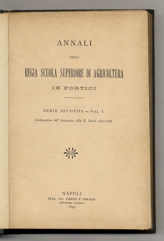 ANNALI della Regia Scuola Superiore di Agricoltura in Portici. Serie seconda - Vol. I.