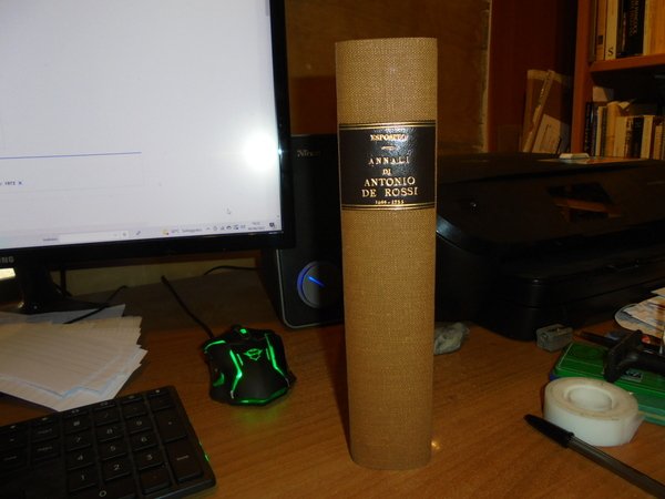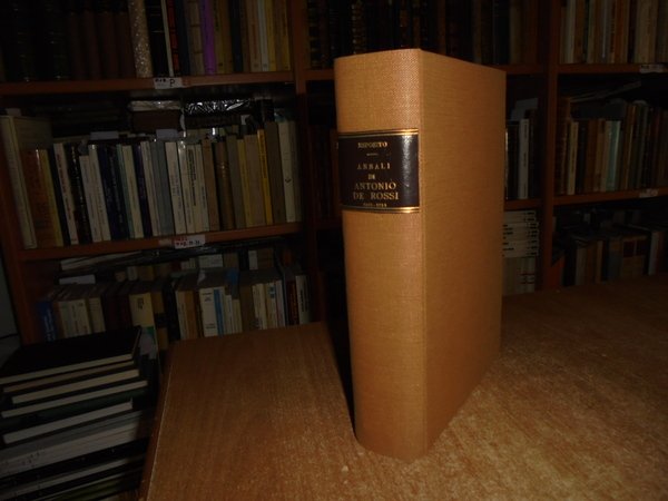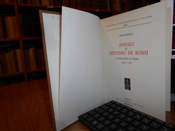 ENZO ESPOSITO. Firenze, Leo S. Olschki Editore, 1972. ANNALI DI ANTONIO DE ROSSI STAMPATORE IN ROMA (1695-1755). In-8°, tela con titolo in oro entro tassello al dorso, copertine originali conservate. xxxi, 645 pp. con XLIII tavole f.t. Come nuovo con legatura in tela e le brossure originali conservate. Uff. E - I - 5 - 2