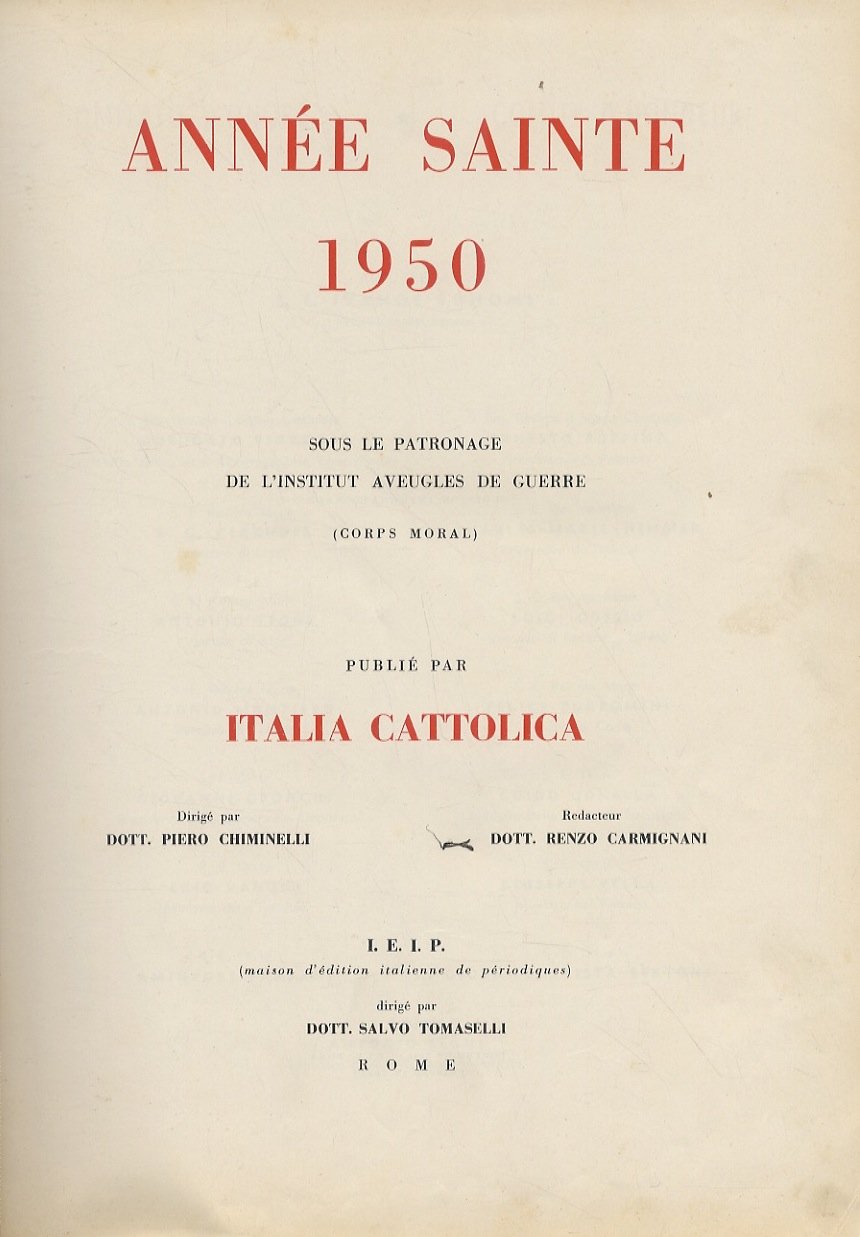 Année Sainte 1950. Sous le Patronage de l'Institut Aveugles de Guerre. Publié par Italia Cattolica.
