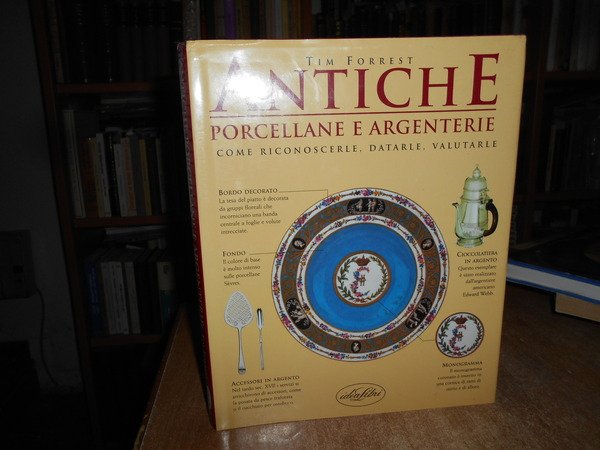 TIM FORREST. Rimini, Idea Libri, 1998. Antiche Porcellane e Argenterie come riconoscerle, datarle, valutarle. In-4° piccolo, tela edit. rossa con titolo in oro al dorso, sovracopertina ill. a col. 160 pp. con numerose illustrazioni a colori nel testo. In ottimo stato. Uff. stanzetta a sinistra 2 - 3 - 2 carc.