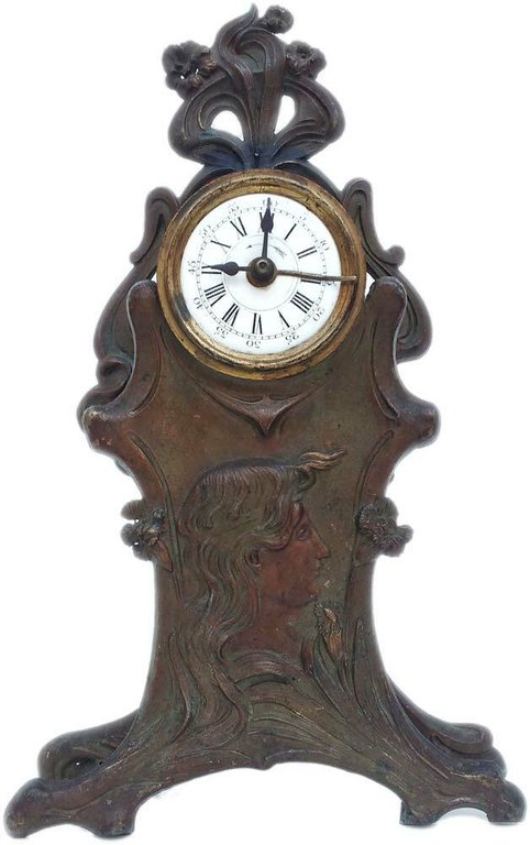 Antico orologio da tavolo in antimonio bronzato d'epoca e stile Liberty