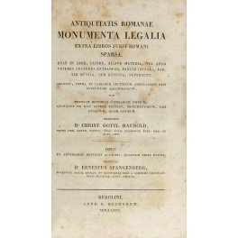 Antiquitatis romanae monumenta legalia extra libros juris romani sparsa quae in aere lapide aliave materia vel apud veteres auctores extraneos partim integra partim mutila sed genuina supersunt. Notitiam historico-literariam omnium quotquot ex illo genere exstant monumentorum tam legalium quam aliorum praemisit D.r Christ. Gottl. Haubold. Opus ex adversariis defuncti auctoris quantum fieri potuit restituit Dr. Ernestus Spangenberg .