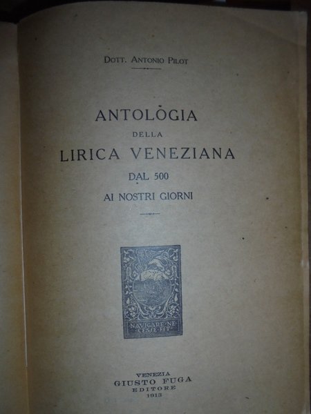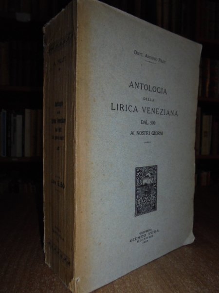 Pilot, Antonio. Venezia, Giusto Fuga Editore, 1913. Antologia della Lirica Veneziana dal 500 ai nostri giorni. In-8°, br. 939 pp. Esemplare intonso. Neg. Mob. 2.
