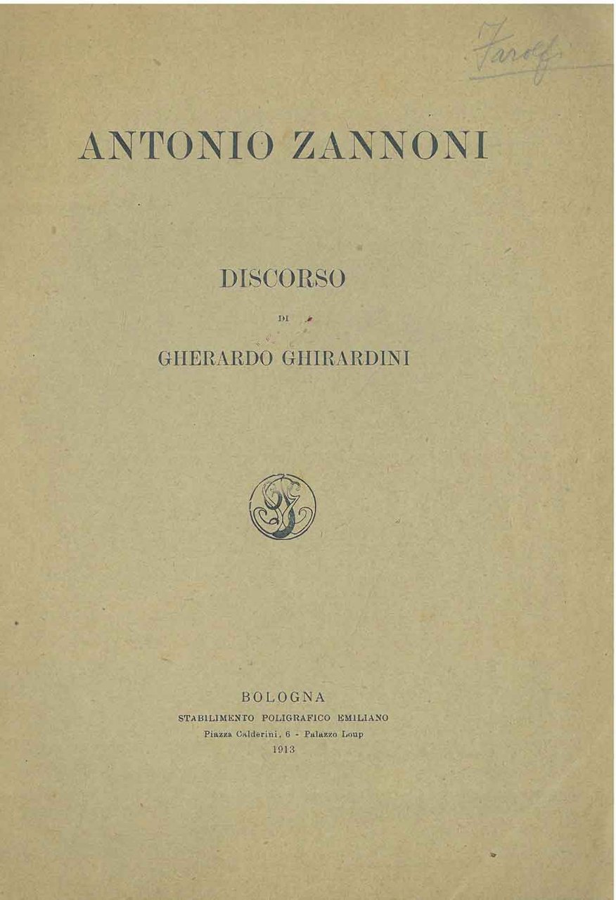 24 cm, br. editoriale, p. 11, firma autografa del figlio di Zannoni al frontespizio